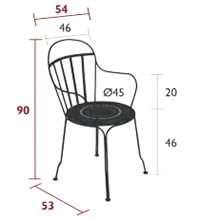 • Rückenlehne aus Stahldraht und Flachstahl.