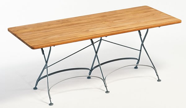 Nachdem der klappbare Tisch Classic über Jahre hinweg immer weiter entwickelt wurde, besitzt dieser nun mit hochwertigeren Materialien und modernster Technik immer noch einen klassischen Charme. Das Gestell wird aus hochwertigem, verzinktem Band- und Rundstahl gefertigt und anschließend pulverbeschichtet. Zudem werden die Gelenke mit Zinkbuchsen ausgestattet. Die Tischplatte besteht aus massiven, unbehandelten Teak und wird keilverzinkt wasserfest verleimt.