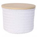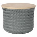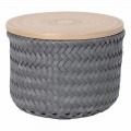 Praktische Körbe mit einer Flechtung aus Kunststoffstreifen (70 % Recycling-Kunststoff) und einem Deckel aus Bambusholz.