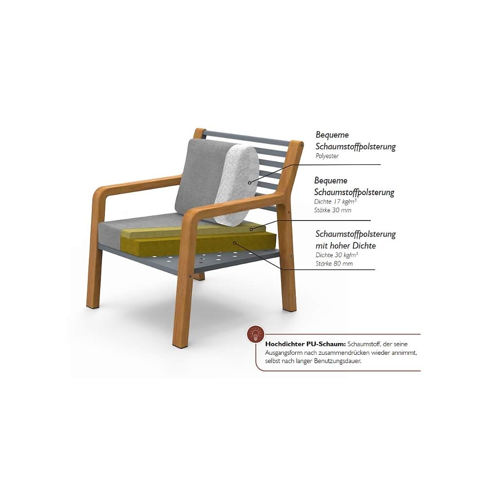• Bezug: Durchgefärbtes Acryl Sunbrella®.