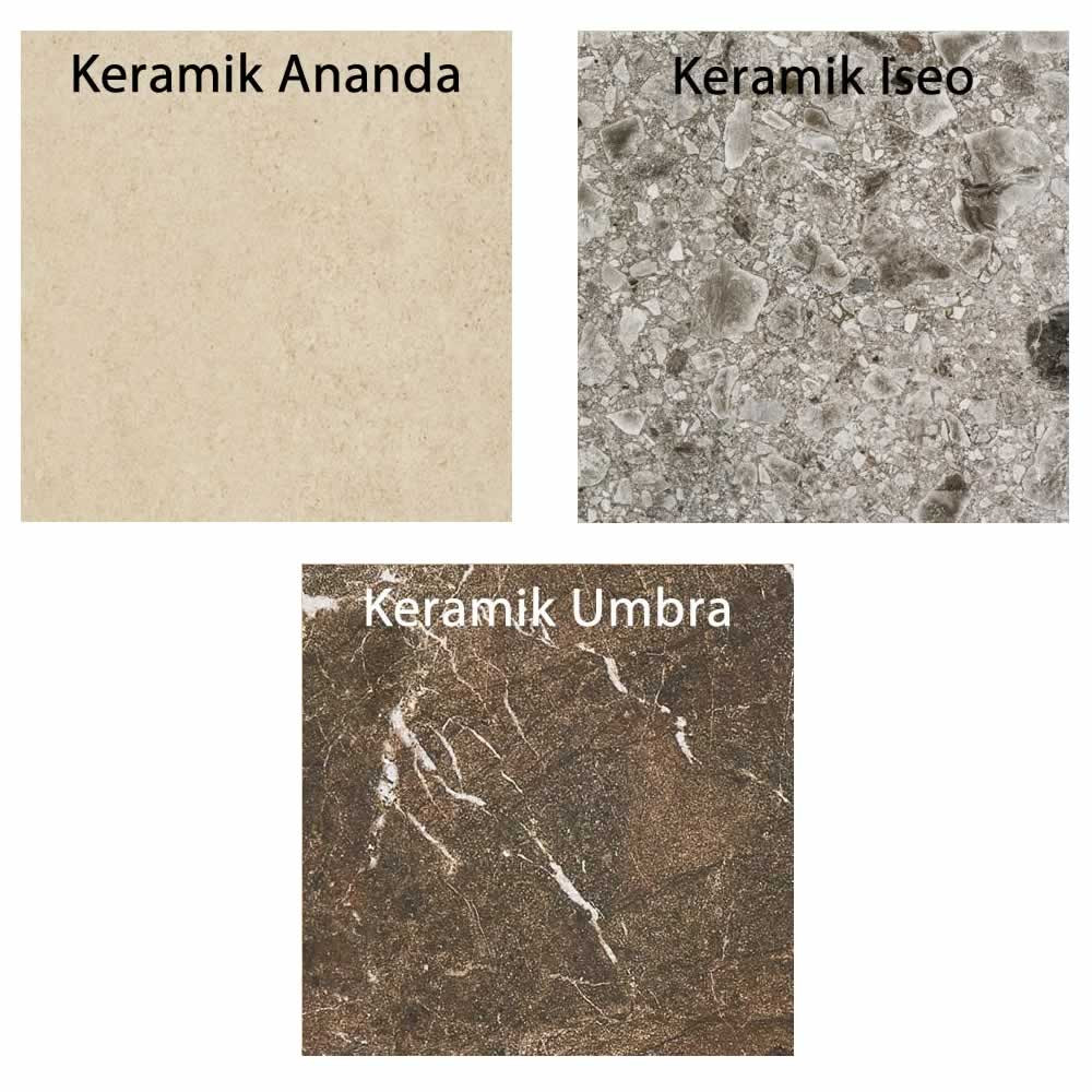 • Die Tischplatten sind in HPL, Keramik oder Teakholz massiv erhältlich.