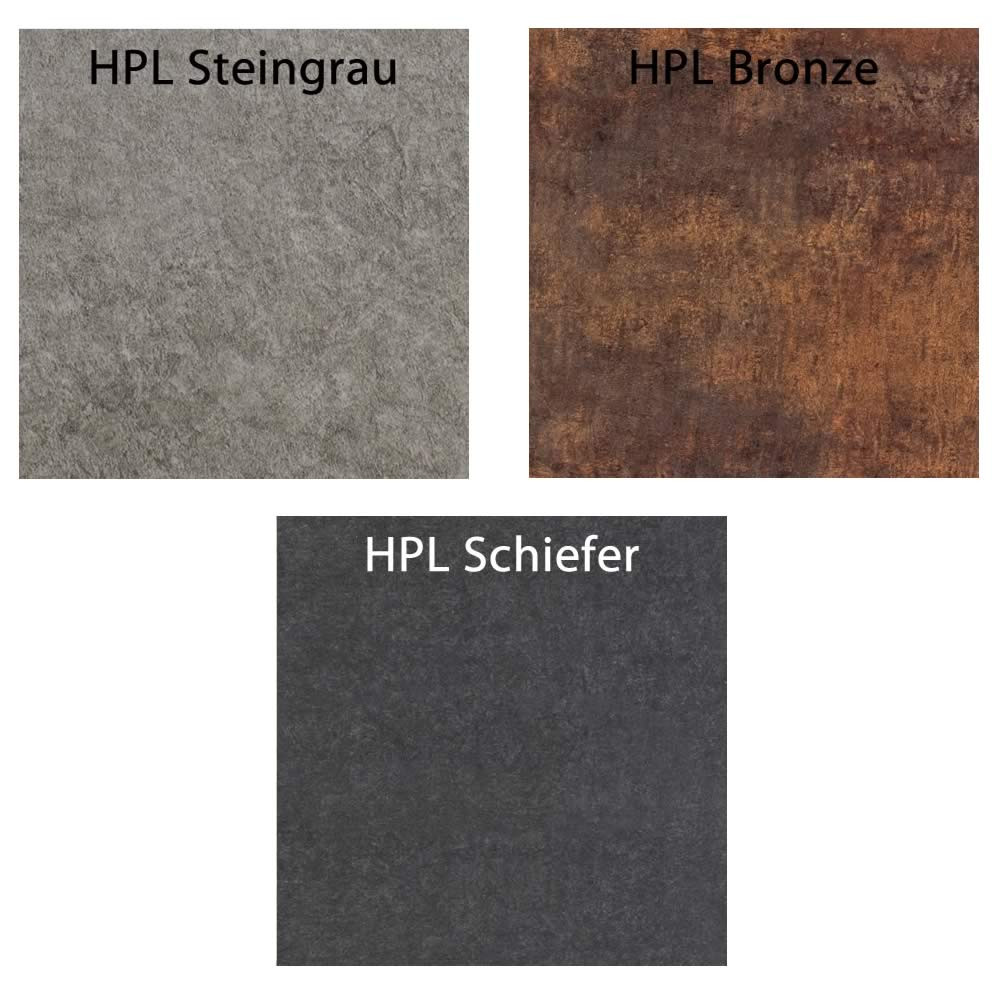 Das Aluminiumgestell trägt eine Tischplatte aus einer langlebigen HPL-Platte.