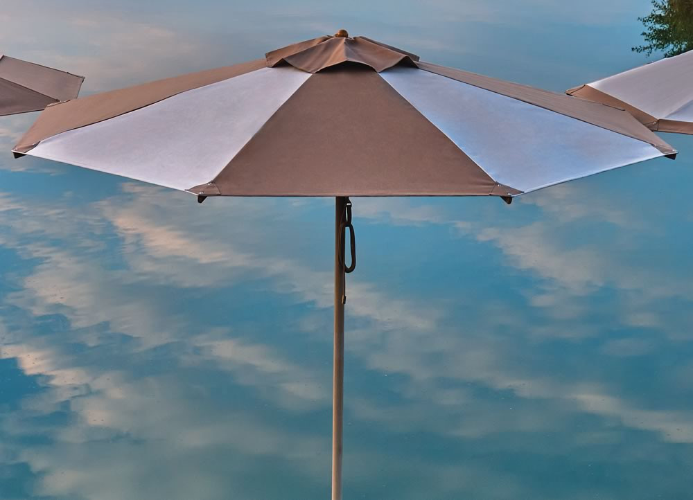 • Dieser Schirm kann zudem mit einem Flaschenzug und einem Knickmechanismus ausgerüstet werden.
